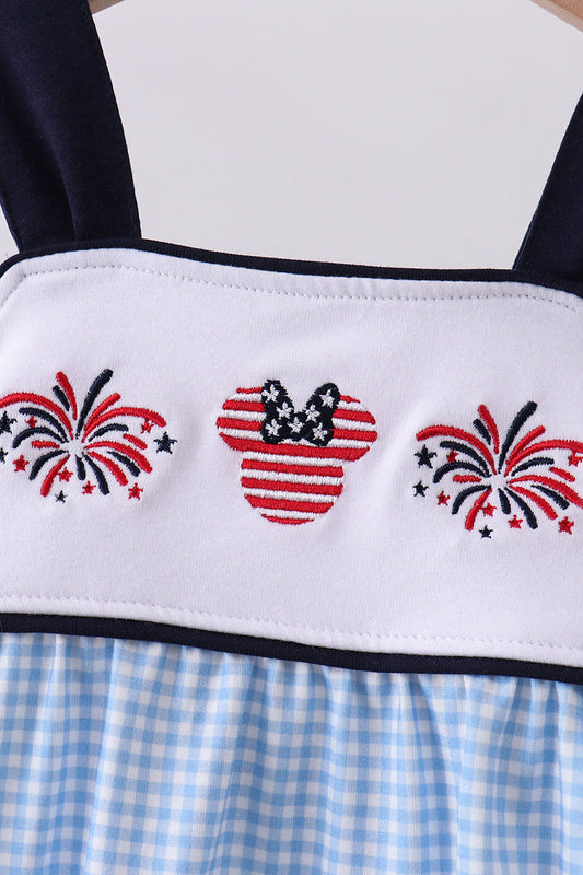 Blue character fireworks embroidery gingham dress