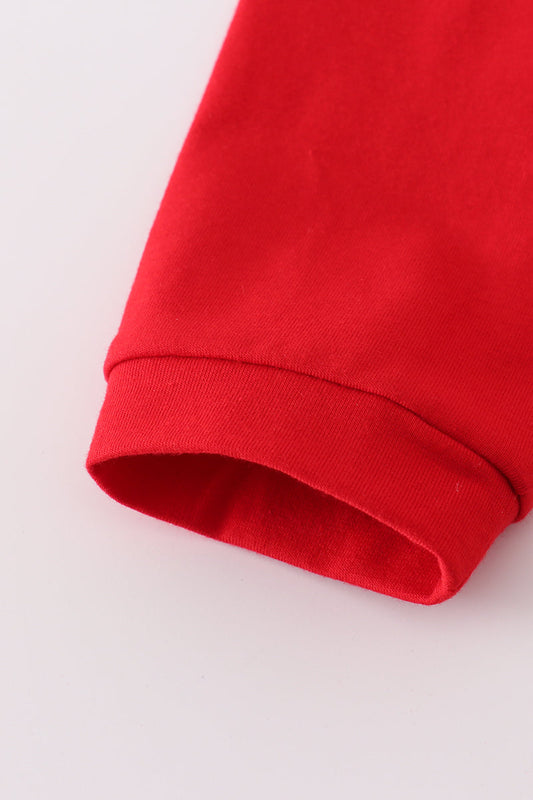 Red tree embroidery plaid ruffle jumpsuit set