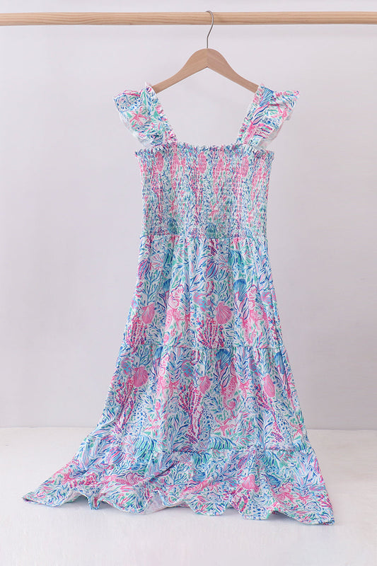 Blue floral smocked dress