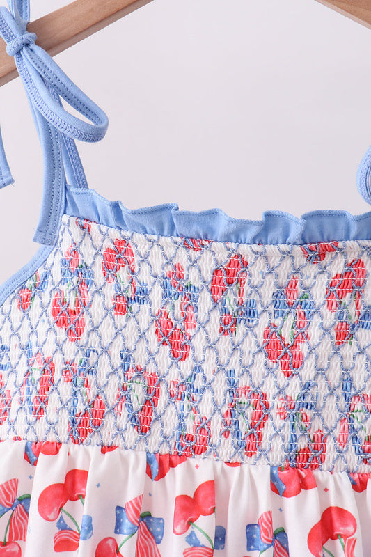 Blue cherry smocked bloomer set