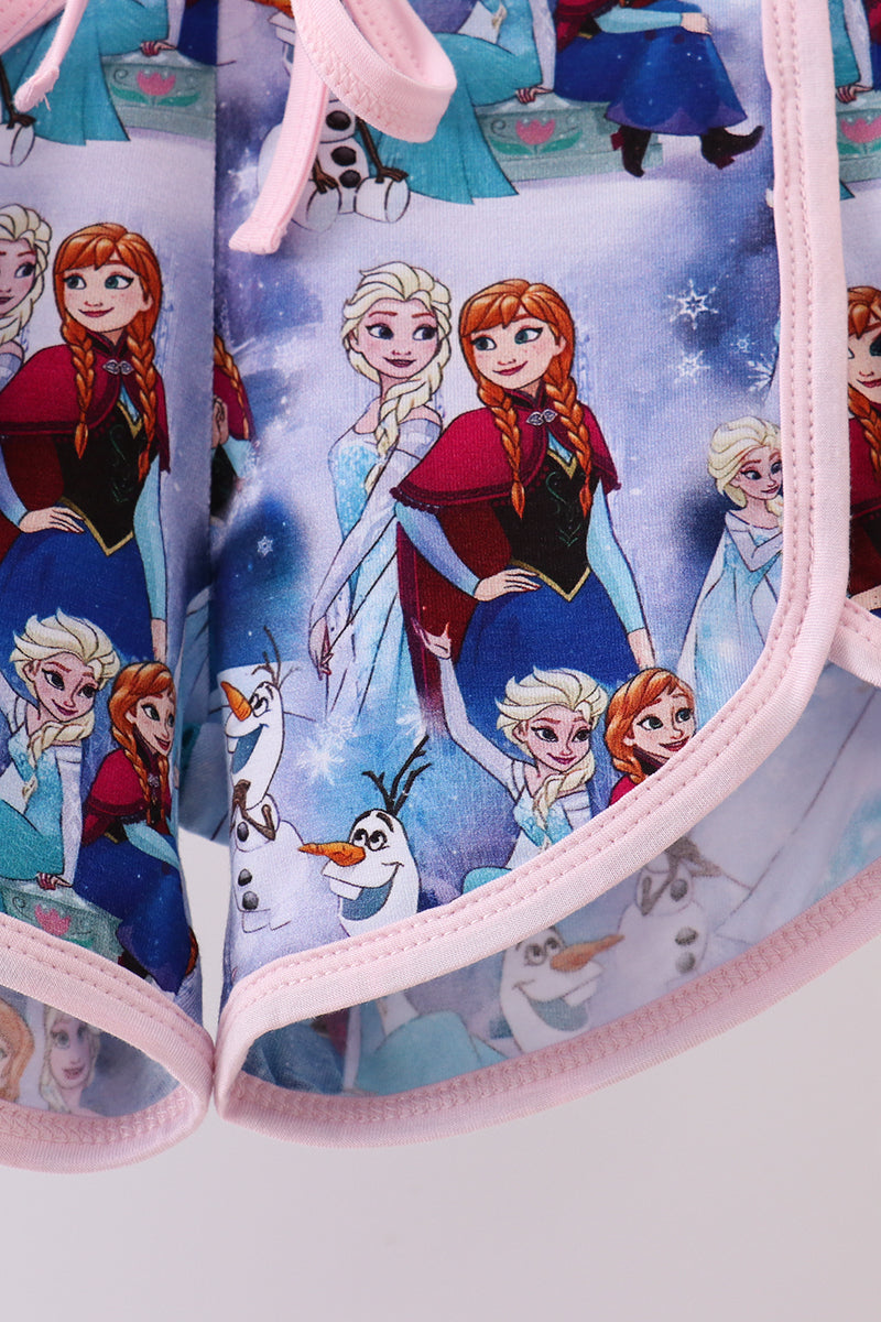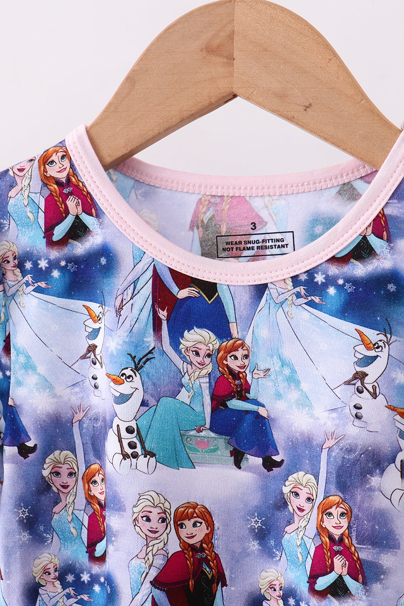 Blue frozen print bamboo shorts set