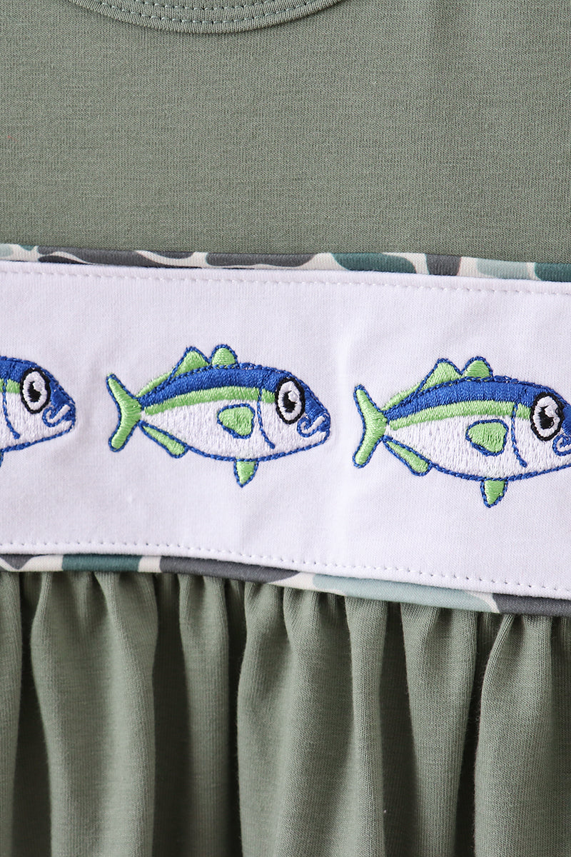 Dive into fun with this Camouflage Fish Embroidery Ruffle Pants Set! Featuring charming fish embroidery and playful ruffles, this set adds a splash of whimsy to any outfit. Comfortable and cute, it's perfect for lively days filled with adventure and smiles.