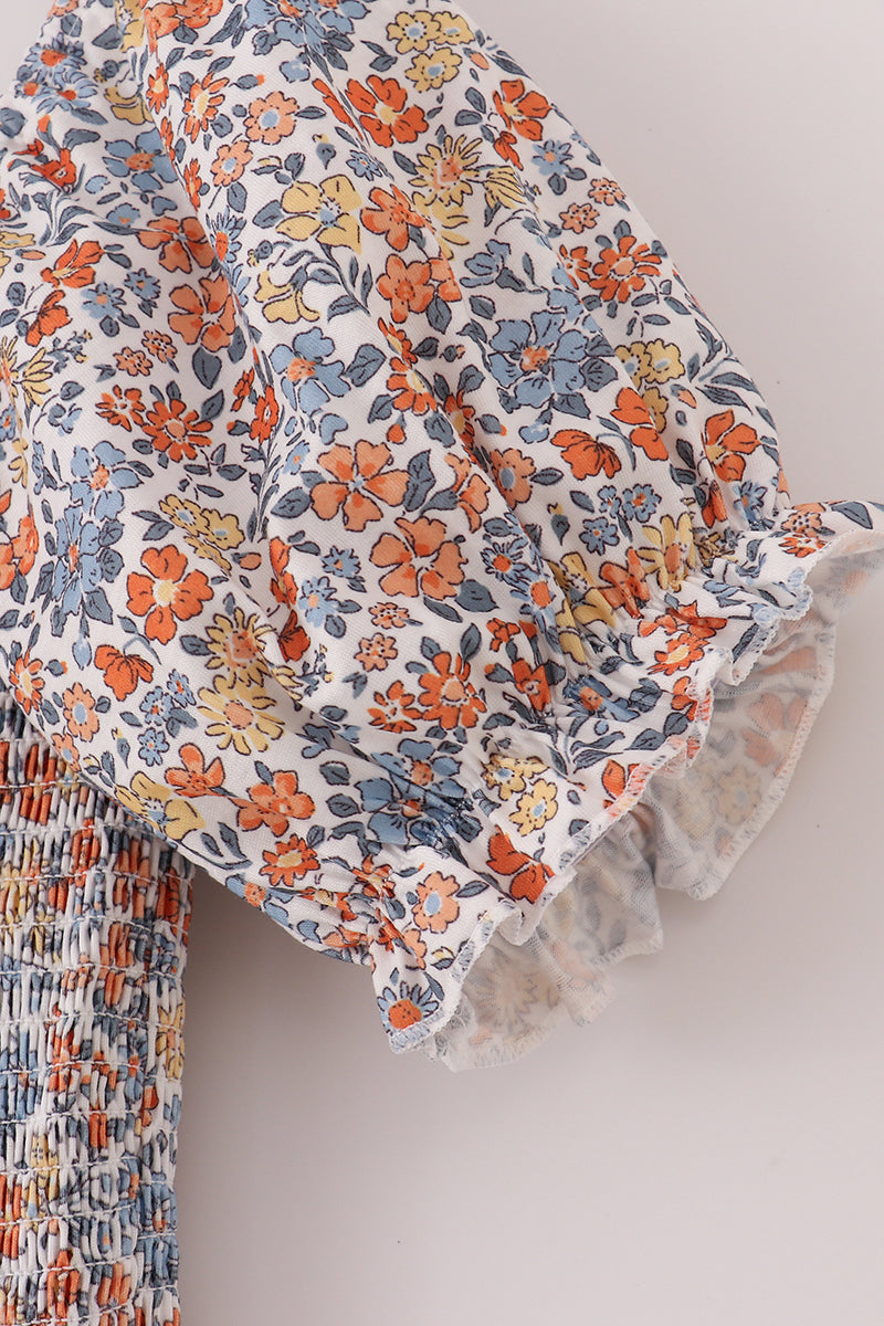 Fall floral print smocked mom dress