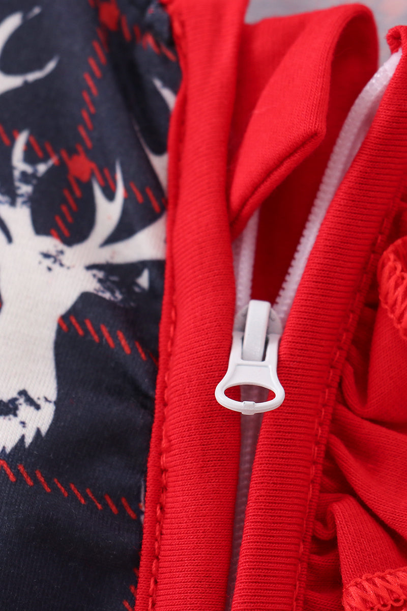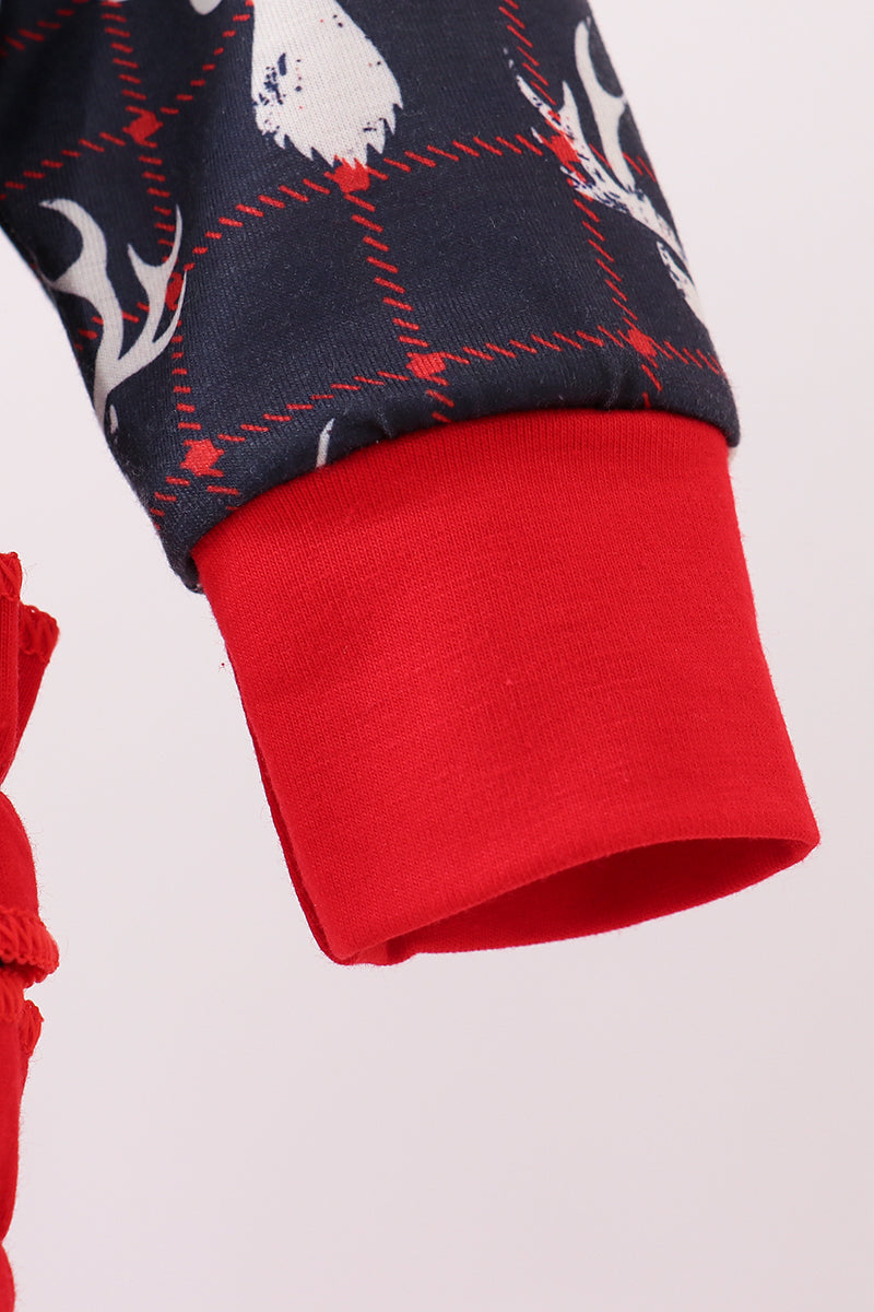 Navy deer print ruffle romper