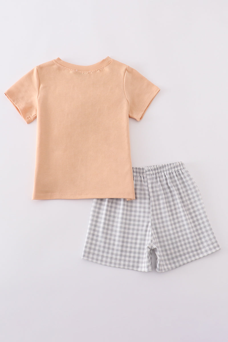 Add some whimsy to your baby's wardrobe with this adorable orange floral bunny applique set. The playful design will bring a smile to both you and your little one, while the applique adds a unique touch to a classic outfit. Perfect for everyday wear, this set is sure to become a favorite.